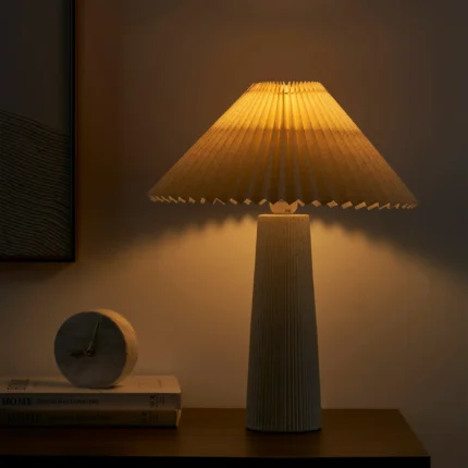 18″in Ribbed Ceramic Table Lamp with Ivory Pleated Shade